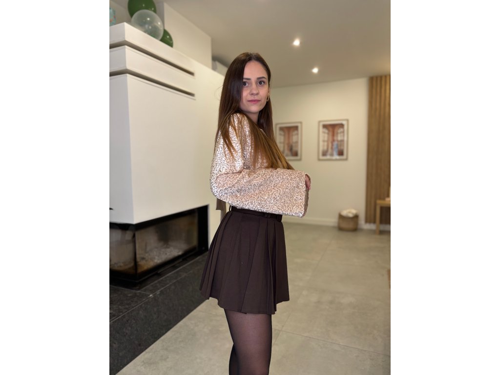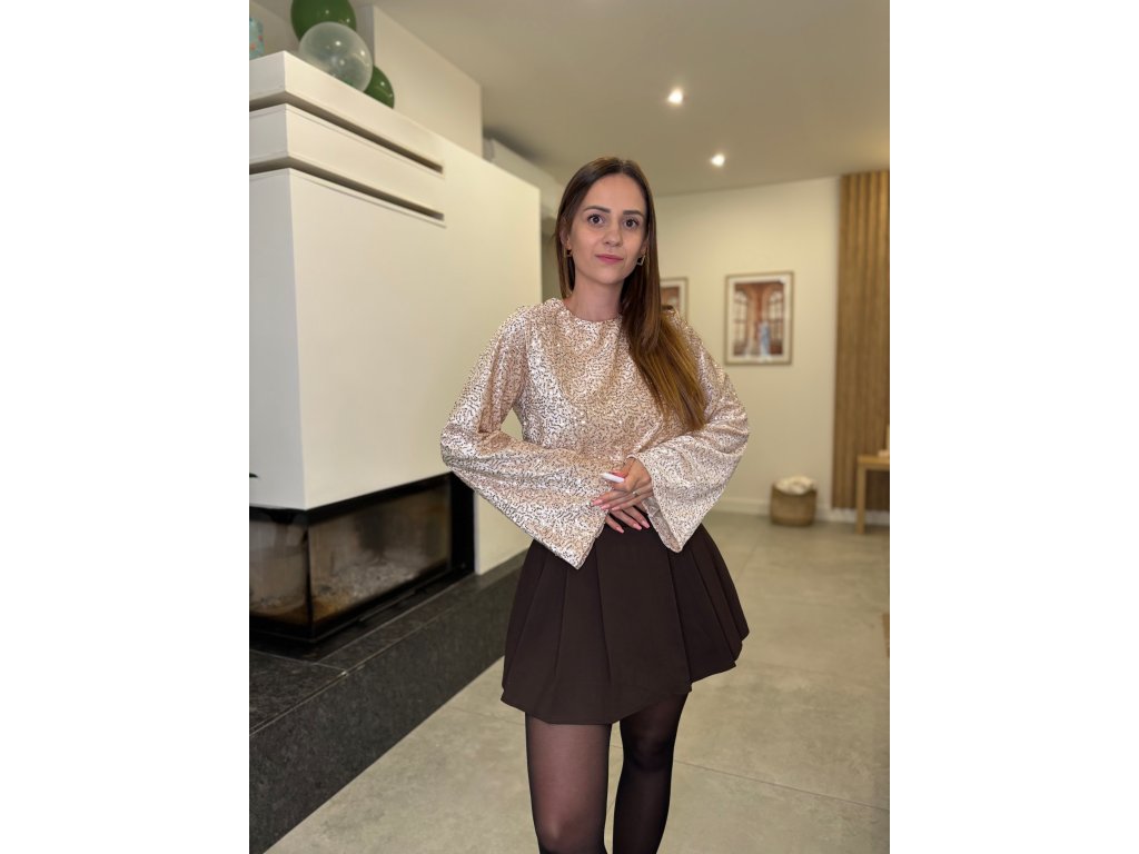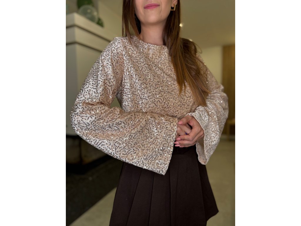 Flitrovaný top s mašličkou - KRÉMOVÝ