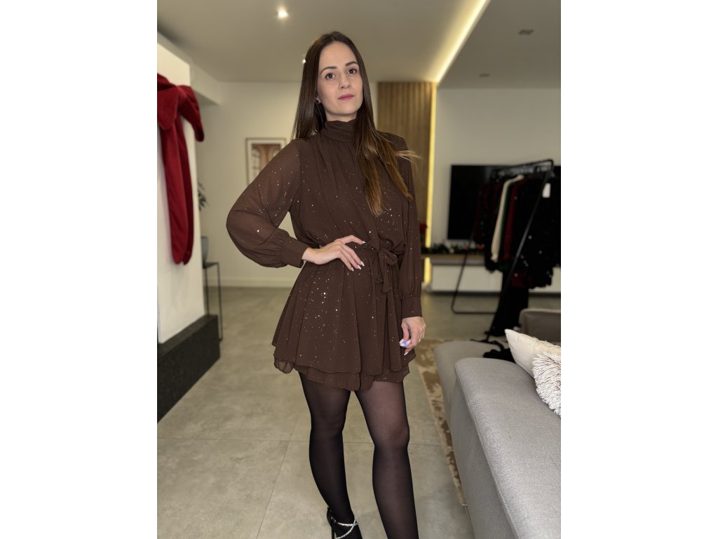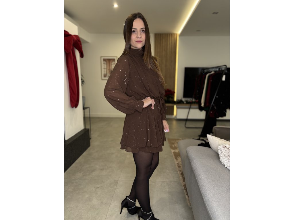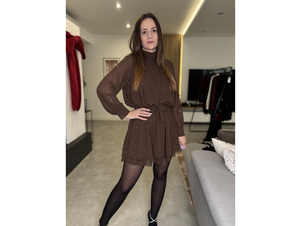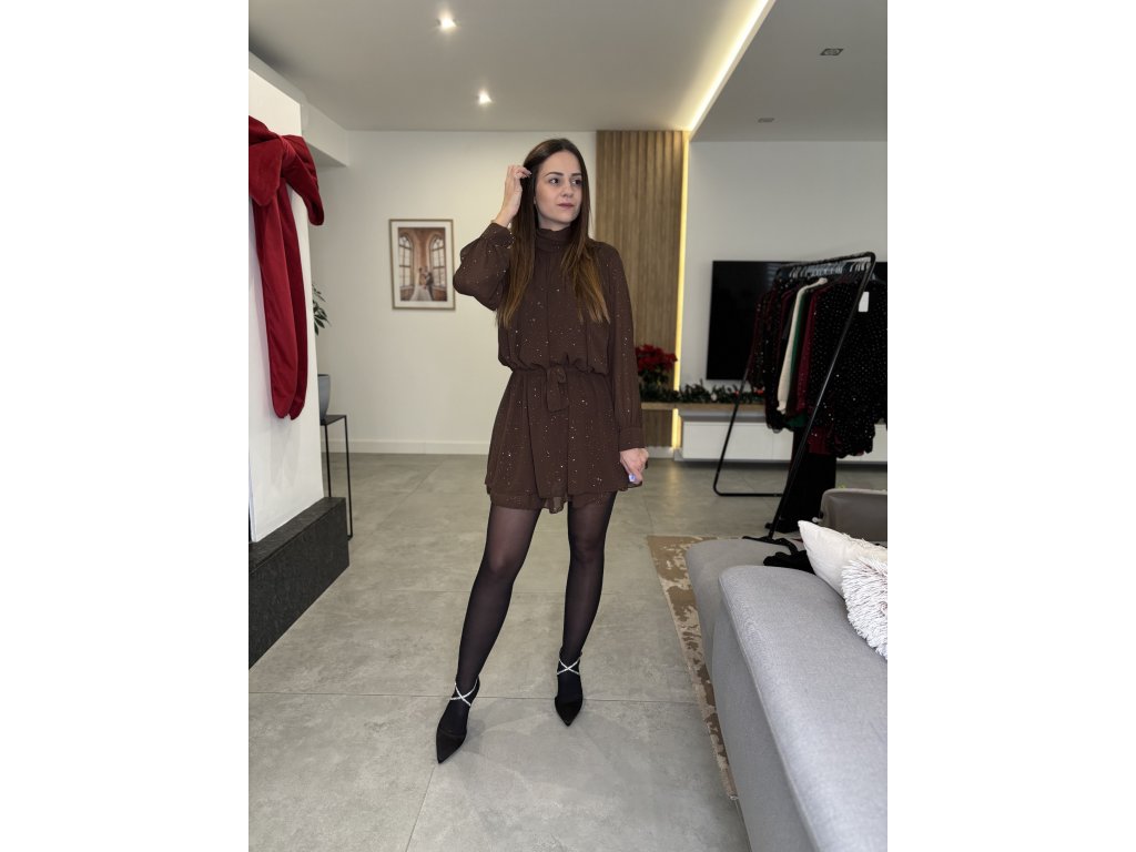 Trblietavé košeľové šaty - ČOKOLÁDOVÉ